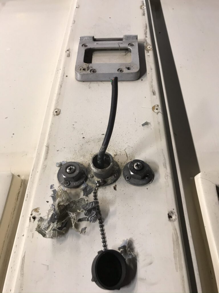 Valomaston sähköjohto oli katkaistu pihdeillä. Kansiliittimestä puuttui osia. Vaihdoin uuden kansiliittimen. Yritin myös jatkaa sähköjohdot. Siinä säätäessä meni koko ilta aikaa ja lopputulos oli huono. Seuraavana päivänä purin koko valomaston ja vaihdoin uuden, riittävän pitkän johdon. Jotta kansiliittimeen menee mahdollisimman vähän vettä, kannattaa sähköjohtoon tehdä mutka, jolloin suurin osa vedestä valuu pois ennen liitosta.