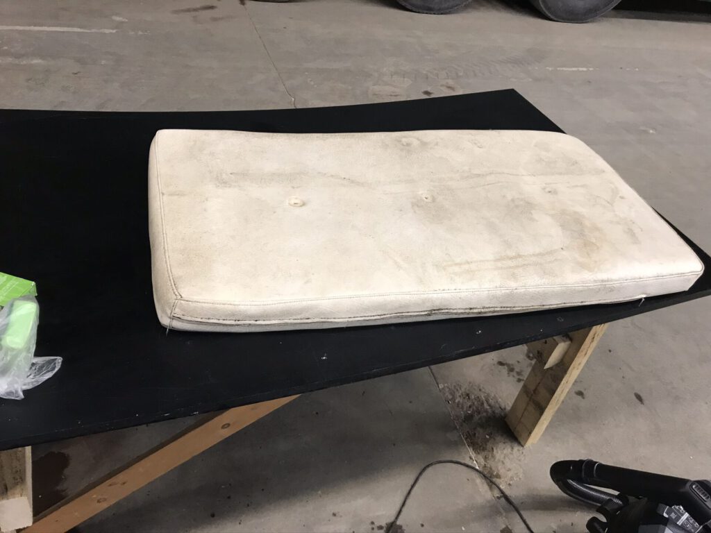 Välineinä oli muovinen pöytälevy, Kärcher –tekstiilipesuri, porakone ja siihen porakoneharjat (pehmeitä, 10€, Puuilosta), Mellerud homeenpesuainetta, Solmaster AS40-yleispesuainetta, painekannu pesuaineen levitykseen. Porakone harja helpottaa ja nopeuttaa työtä huomattavasti.