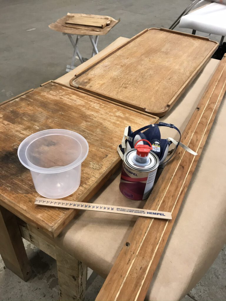 Aluksi lakkasin pinnat kiiltävällä Hempelillä. Lakkaa tuli 8 kerrosta.